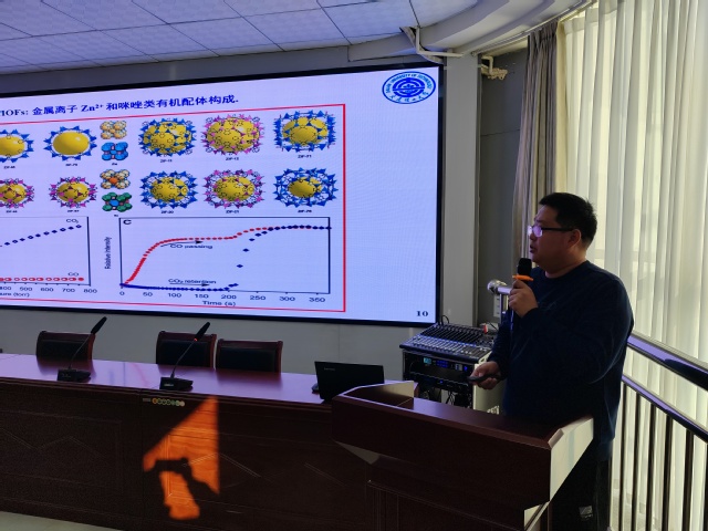 张旭副教授从MOFs基础理论、MOFs及其衍生物的构筑、MOFs及其衍生物在超级电容器中应用及MOFs及其衍生物在锂硫电池中应用等4个方面进行了深入的阐述。报告会后与部分教师进行交流。报告内容丰富,形象生动,参会教师与学生受益匪浅。