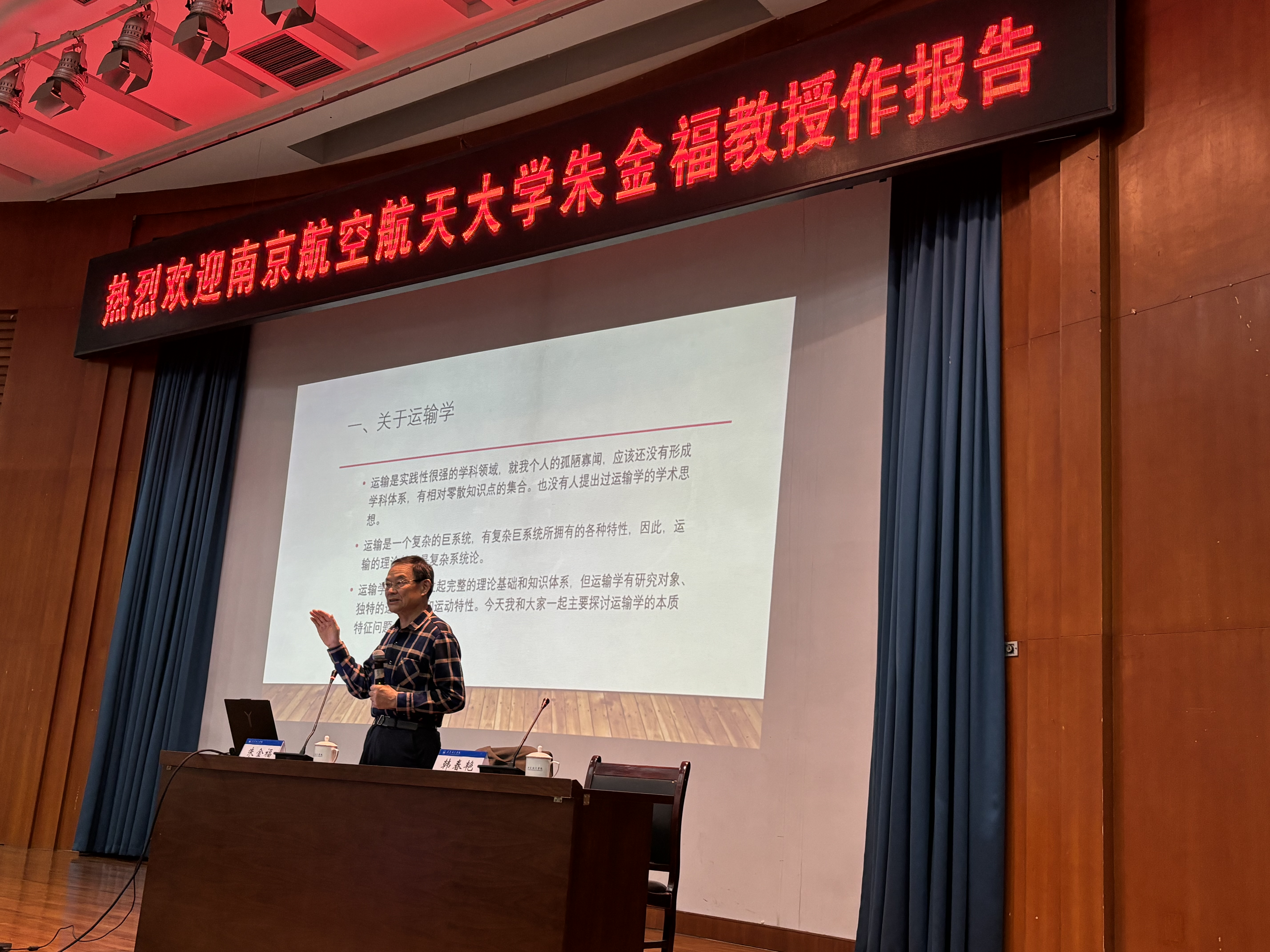 2024-04-294月24日,我国航空运输规划领域著名学者和学科带头人、南京航空航天大学朱金福教授应邀来校作了题为“民航运输学本质特征”的学术报告。报告在QY球友会体育明德报告厅举行,机场学院院长韩春艳教授主持报告会,学院部分教师代表和学生代表参加了报告会。