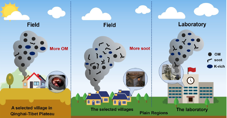 民用生物质燃烧排放是全球空气污染的重要贡献源。以往研究多采用全样分析法来获取生物质燃烧的排放特征,很少关注这些源排放颗粒物的微观特征。本研究利用透射电子显微镜等单颗粒技术手段,采用实验室模拟燃烧和农村实测相结合的方法,对14种生物质燃烧排放颗粒物的形貌、组分、粒径、混合状态等微观信息特征进行了详细分析。研究发现,不同种类的生物质燃料所排放的颗粒物具有较大差异,其中木柴类燃料主要排放碳质颗粒物,却极少排放富钾颗粒;而作物秸秆类燃料与之相反,其在燃烧过程中会排放大量的富钾颗粒。此外,本研究发现农村实测研究和实验室研究所获取的排放特征也具有较大差异。与实验室研究结果相比,华北农村实测结果中含有更多的烟尘颗粒,这与它更高的燃烧温度有关;而青藏高原农村实测结果中却含有更少的烟尘颗粒和更多的有机颗粒,这主要是因为高海拔地区较低的氧气含量导致燃料经常处于焖烧。本研究结果构建了民用生物质燃烧的单颗粒源谱数据库,该数据库可为我国大气污染物的来源解析工作提供基础性的源谱数据。