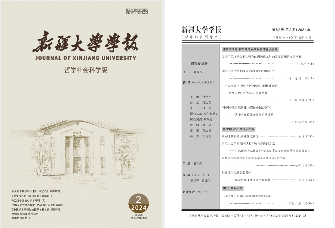 2024-07-03近日,人文学院张龙海博士在CSSCI期刊《新疆大学学报》(哲学社会科学版)上发表题为《蒙元时期新疆、中亚驿道新论》的文章。《新疆大学学报》由新疆大学主办,在“一带一路”研究等领域有较高的学术影响力,为中文社会科学引文索引(CSSCI)来源期刊、北京大学中文核心期刊。