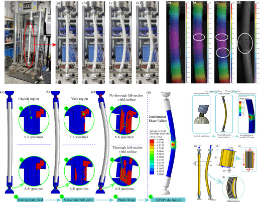 本研究针对土木工程复合材料构件的力学性能优化展开系统性探索,揭示了带螺栓球节点GFRP圆形空心截面构件在轴向压缩载荷下的屈曲行为规律。研究团队基于MTS四柱电液伺服加载试验系统,结合数字图像相关技术(DIC),定量分析了铝合金与不锈钢两种套筒材料对构件屈曲临界载荷的增强效应。结果表明:采用不锈钢套筒可显著提升构件承载能力42.6%,并通过应变场分析揭示了层间剪切失效机制。基于节点刚度匹配原理,研究团队建立了复合材料空间桁架结构的设计准则,为GFRP材料在桥梁工程与大跨建筑中的工程应用提供了关键理论支撑。